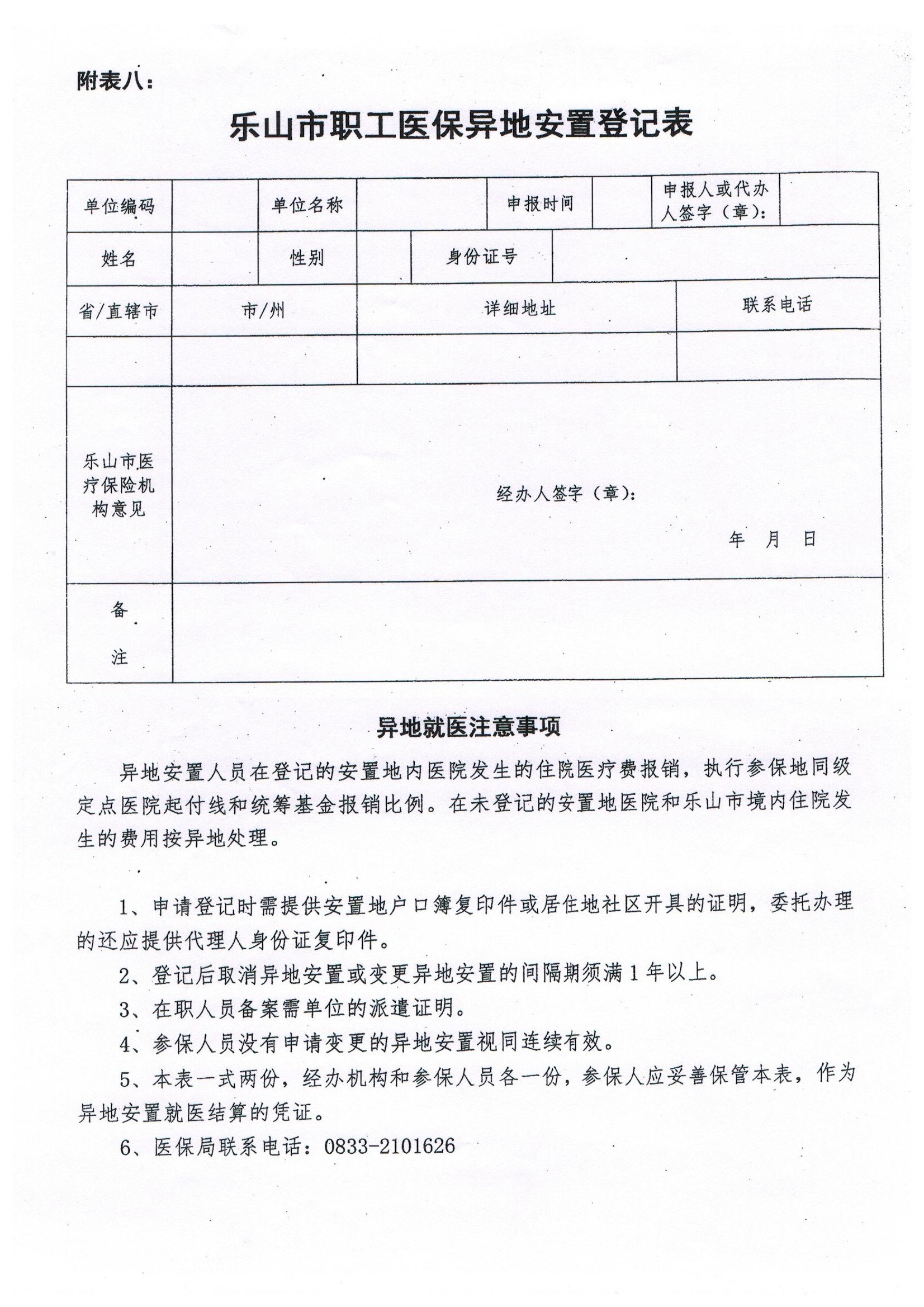 点击下载:乐山市职工医保异地安置登记表 [详细]