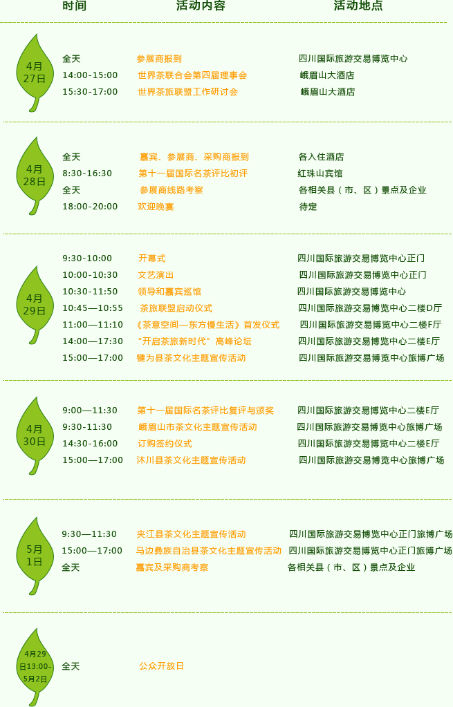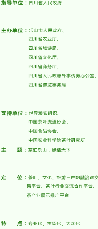 彭琳指出,本届茶博会,除了发起成立世界茶旅联盟、举办高峰论坛等主题活动外,还将展示乐山“一山一茶一旅”茶旅产品,推出国内外茶旅精品线路。我们希望通过这个平台,架起茶界茶商[详细]