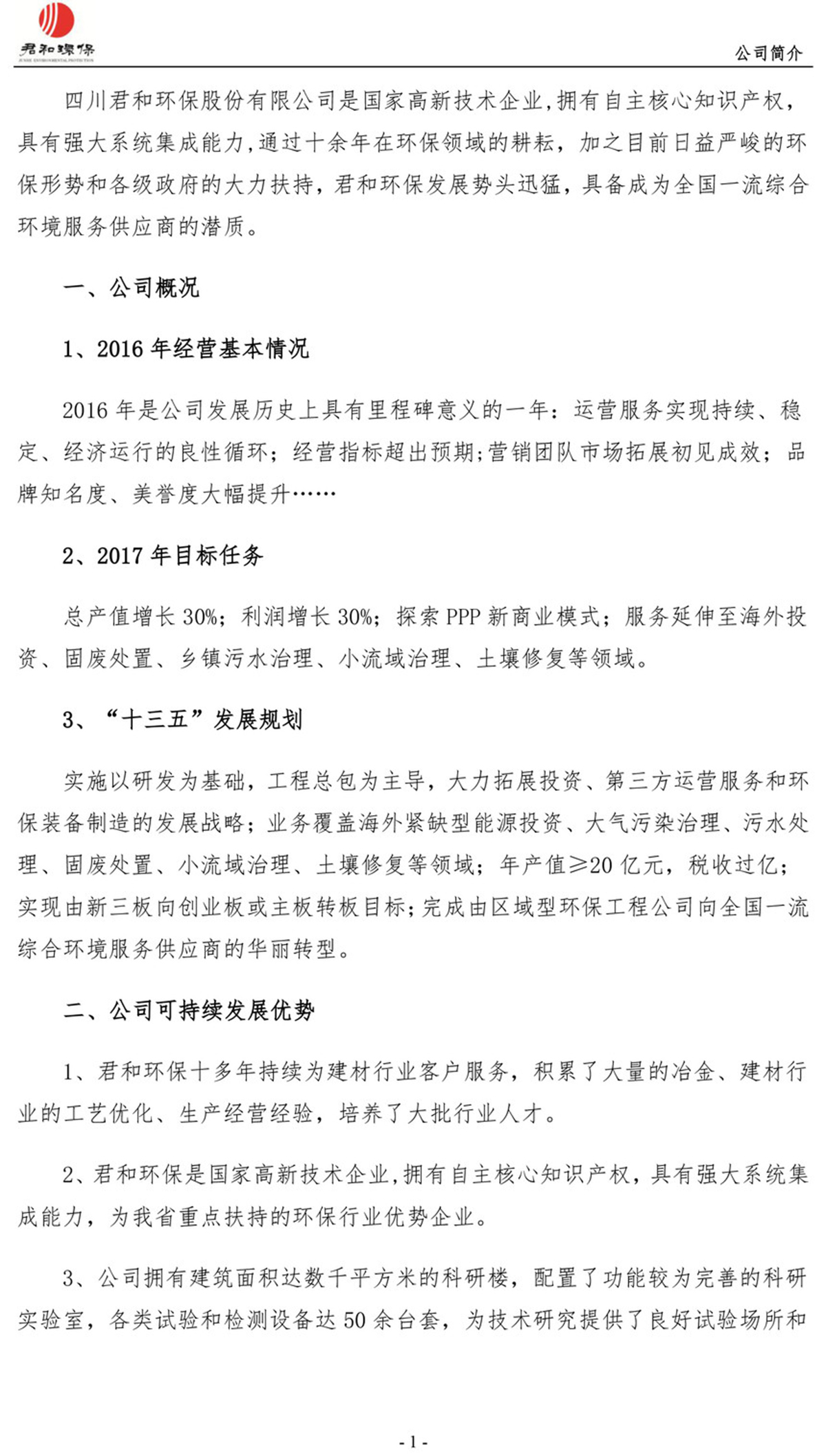 2017年6月16日,四川君和环保股份有限公司董事长李乐军与巴什科尔托斯坦共和国副总理塔热季洛夫举行了关于巴什科尔托斯坦共和国5000t d熟料新型干法水泥生产项目推进工作的会谈,